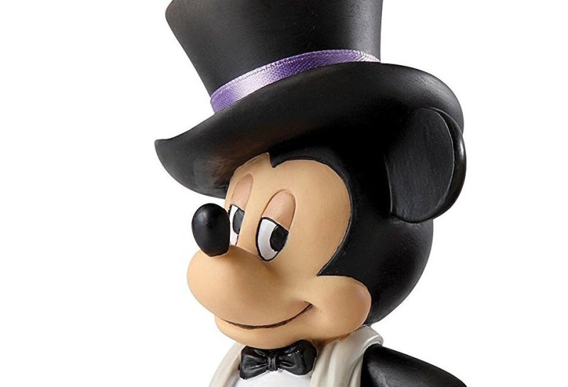 Disney's Mickey Mouse strikes a pose in this stunning new ensemble collection of highly detailed figurines embellished with elegant haute couture and unique plussing elements; faux gems, encrusted crystals and opalescent paint bring each sculpture to life.